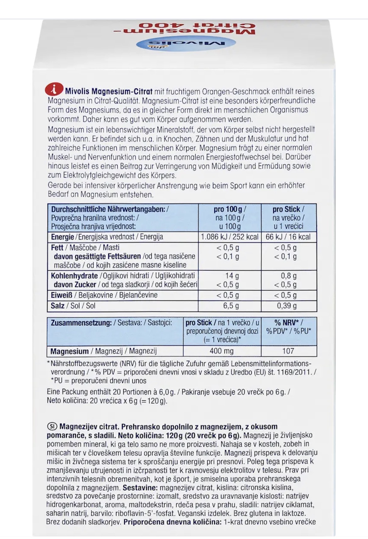 مکمل منیزیم سیترات Mivolis ۴۰۰ گرم