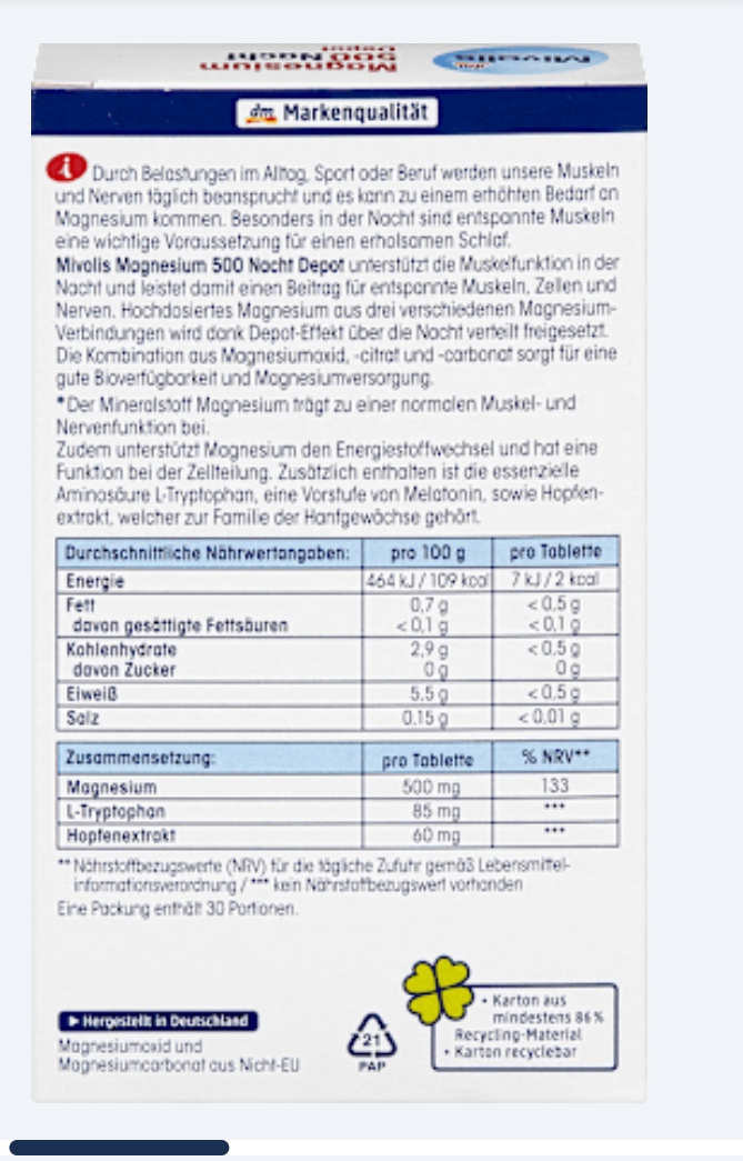 مکملی خوشطعم با جذب بالا، مناسب برای حمایت از عملکرد منیزیم ۵۰۰ دپو شب میولیس ترکیبی از سه نوع منیزیم (اکسید، سیترات و کربنات) است که با اثر دپو، مواد مغذی را بهصورت تدریجی در طول شب آزاد میکند. این مکمل با فرمولی ویژه شامل التریپتوفان و عصاره رازک، به آرامش عضلات، اعصاب و خواب شبانه کمک میکند. منیزیم نقش مهمی در عملکرد طبیعی عضلات و سیستم عصبی دارد و برای افرادی که در اثر استرس، کار یا ورزش دچار تنش عضلانی میشوند بسیار مفید است. مصرف روزانه یک عدد برای تأمین منیزیم مورد نیاز بدن کافی است. عضلات، آرامش اعصاب و کاهش خستگی و استرس فیزیکی.