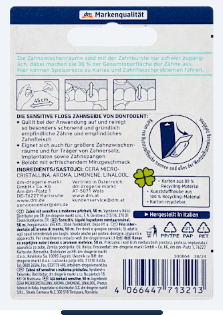 نخ دندان دنتمد DONTODENT مدل Sensitive Floss مخصوص دندان‌های حساس با طعم نعناع – محصول اصل آلمان