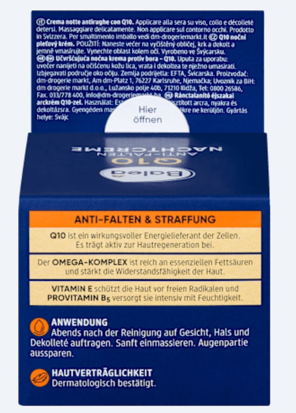 کرم شب ضدچروک و سفت‌کننده پوست باله ا با Q10 و ویتامین E Balea Q10 Anti-Wrinkle Cream