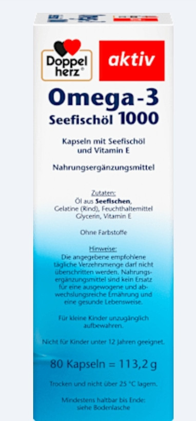 کپسول امگا 3 دابل هرتز 1000 میلی‌گرم 80 عددی – Doppelherz Omega-3 1000 mg Capsules 80 pcs