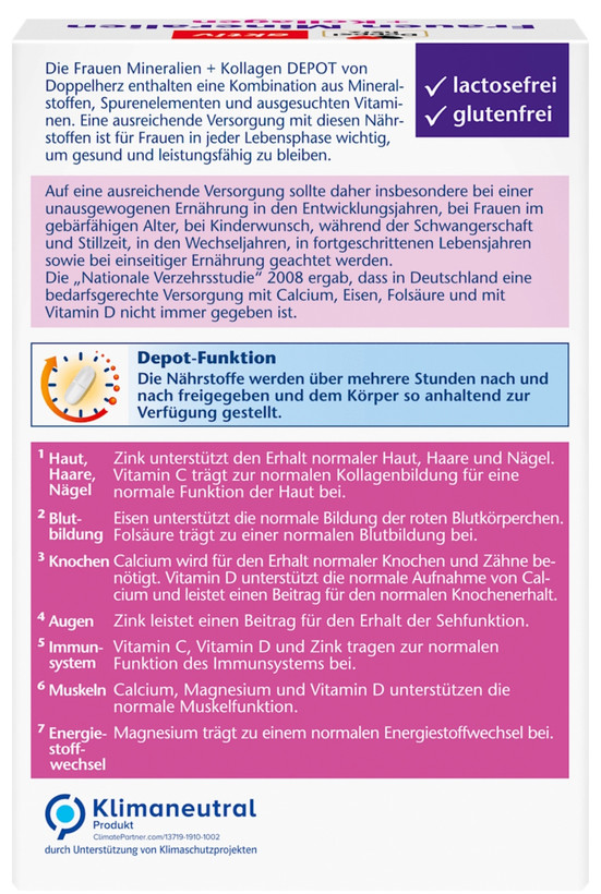 براساس «مطالعه ملی تغذیه آلمان ۲۰۰۸»، مصرف کافی کلسیم، آهن، فولیک اسید و ویتامین D در بسیاری از زنان به میزان مطلوب انجام نمیشود. این مکمل با ارائه یک فرمول کامل و علمی به تأمین این کمبودها کمک میکند.