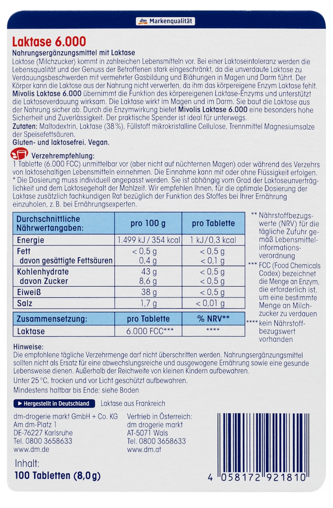 میولیس لاکتوز ۶۰۰۰ – قرص کمک به هضم لاکتوزMivolis Lactase 6,000