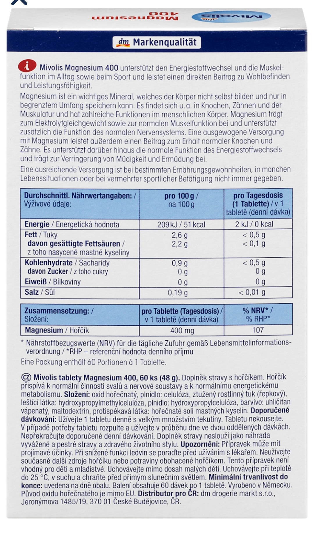 مکمل منیزیم ۴۰۰ برای انرژی، عضلات و اعصاب(۶۰عددی) – Mivolis Magnesium 400