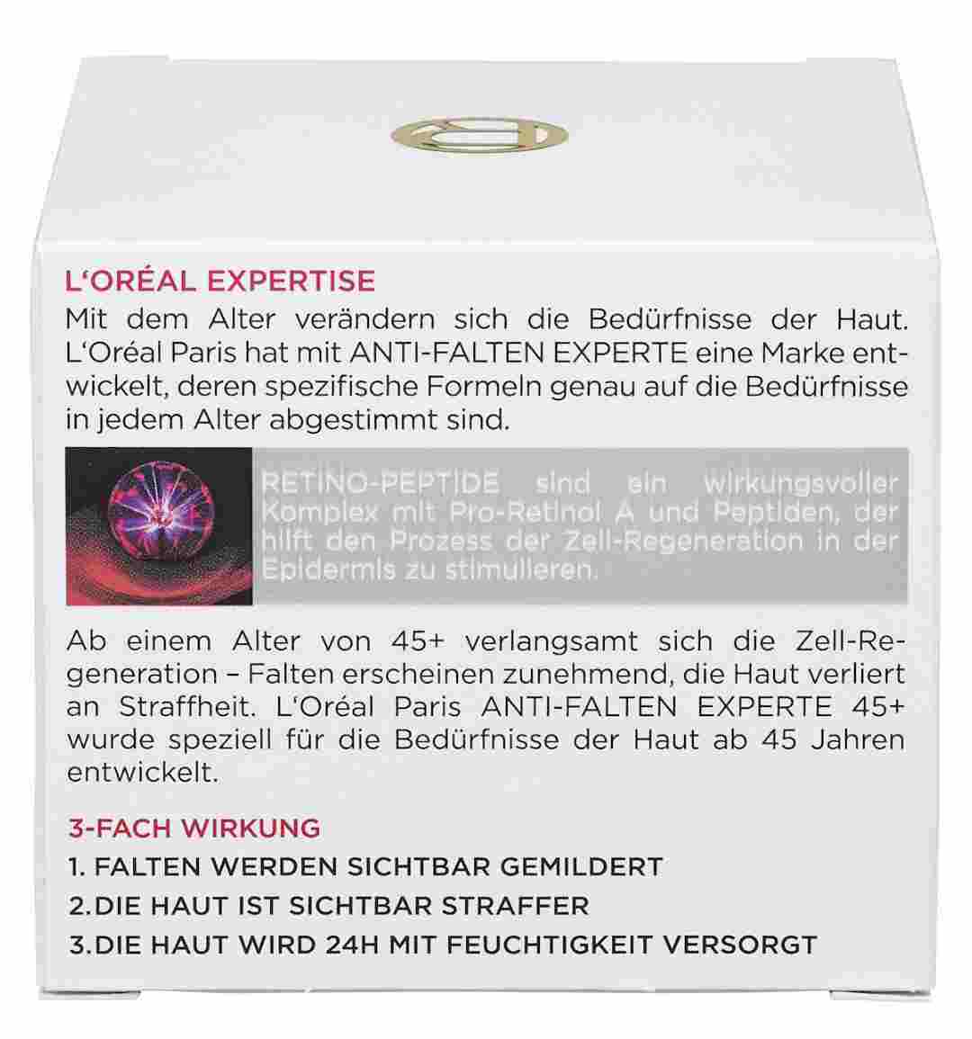 کرم Paris Dermo Anti-Falten Experte 45+ برای پوست بالغ طراحی شده و به افزایش سفتی و نرمی پوست کمک میکند. این کرم حاوی Retino-Peptide، ترکیبی مؤثر از Pro-Retinol A و پپتیدها است که فرآیند بازسازی سلولی در اپیدرم را تحریک میکند. استفاده منظم از این محصول موجب کاهش چین و چروکها، بهبود انعطافپذیری و لطافت پوست میشود و پوست ظاهری جوانتر و شادابتر پیدا میکند.
