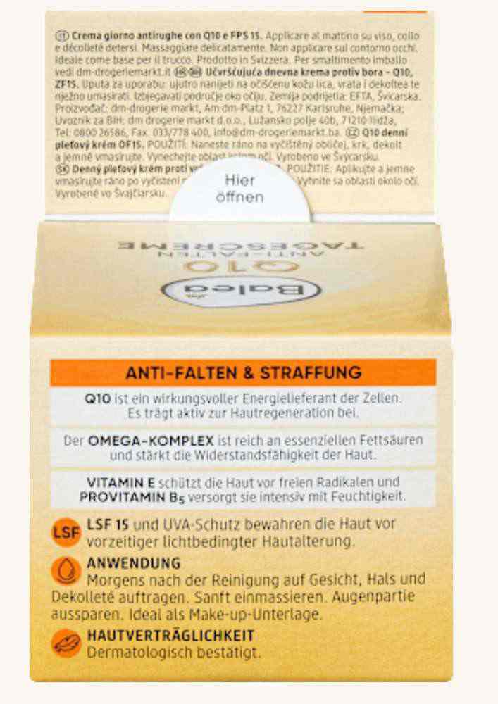 کرم روز Q10 از برند B-A-L-E-A با ترکیبی غنی از Q10 طبیعی، امگا کمپلکس، ویتامین E و SPF15 به کاهش چینوچروکهای اولیه و افزایش استحکام پوست کمک میکند. Q10 بهعنوان منبع انرژی سلولی، فرآیند بازسازی پوست را فعال میسازد و امگا کمپلکس با اسیدهای چرب ضروری، مقاومت طبیعی پوست را تقویت میکند.