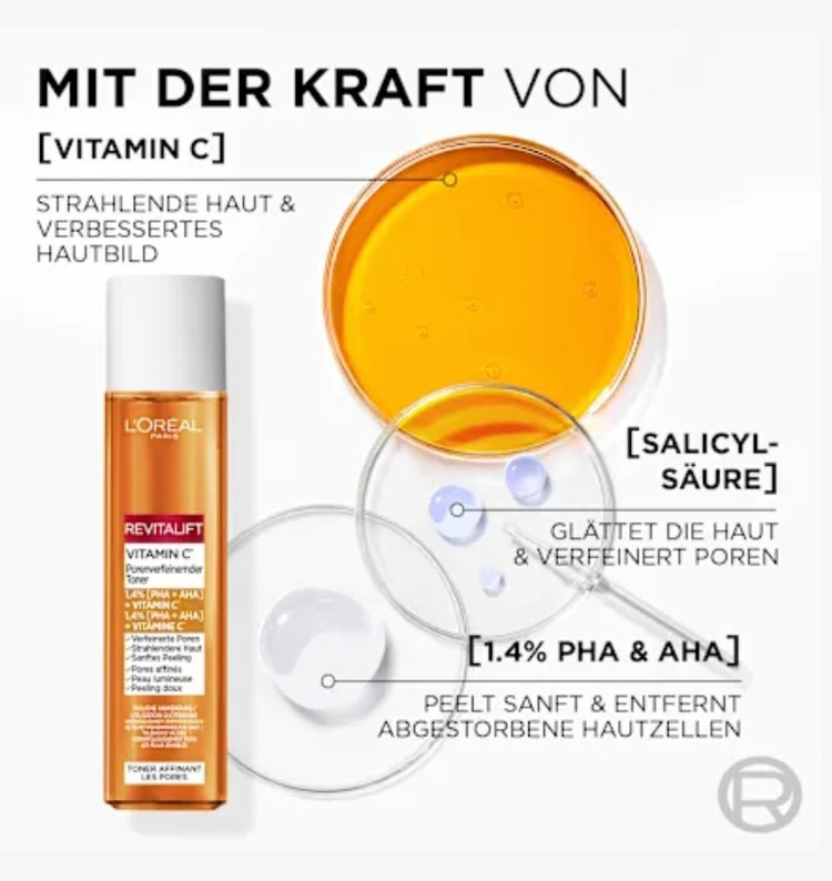 تونر صورت Revitalift ویتامین C از برند L’.O’.R’.É’.A’.L’. P’.A’.R’.I’.S’. با ترکیبی از ویتامین C، AHA و PHA پوست را عمیقاً پاکسازی میکند و چربیها و آلودگیهای باقیمانده را از بین میبرد. این تونر با فرمول ملایم لایهبردار، پوست را روشن و شفاف کرده و ظاهر آن را نرم و یکدست میکند. استفاده منظم باعث کاهش منافذ باز و ایجاد ظاهری صاف و یکنواخت میشود و برای پوستهای حساس نیز مناسب است. نتایج قابل مشاهده پس از اولین استفاده، پوست شما را تازه و درخشان نشان میدهد.