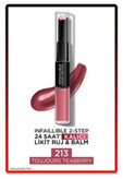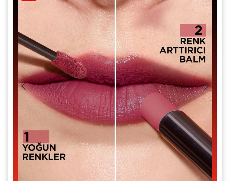 - فرمول دو مرحلهای (رژ مایع + بالم نرمکننده)